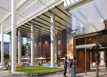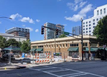 Bank of America Plaza's multifunctional new "front door" is under construction