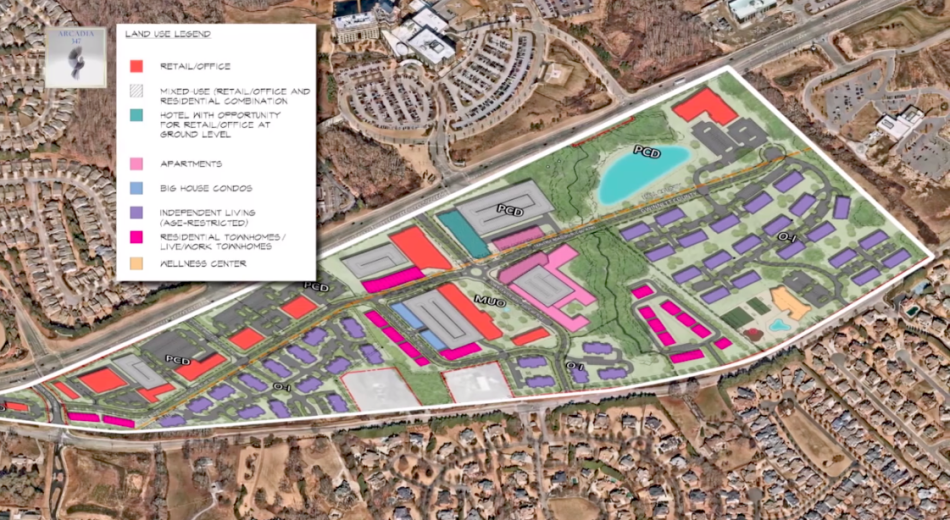 Located at 6150 Thompson Mill Road, next to Chateau Elan’s resort and winery and a Northeast Georgia Medical Center campus, Arcadia 347 is expected to span some 108 acres and straddle the Gwinnett and Hall county line. (The majority of development—roughly 72 acres—would fall within Gwinnett County.)