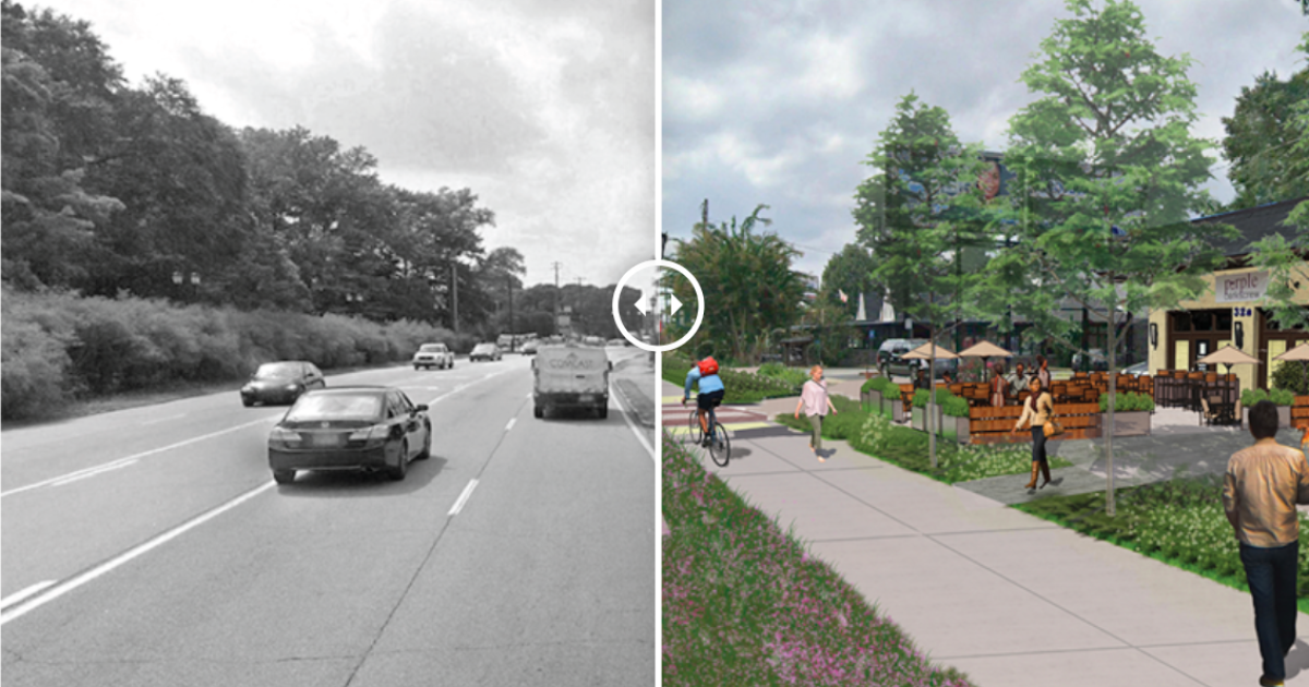 The project calls for reducing the roadway to three lanes for roughly 1.15 miles. At the western end, the Complete Street would start at Sams Crossing near MARTA's Avondale station; from there, it would travel past the new park and through downtown, ending at Ashton Place.