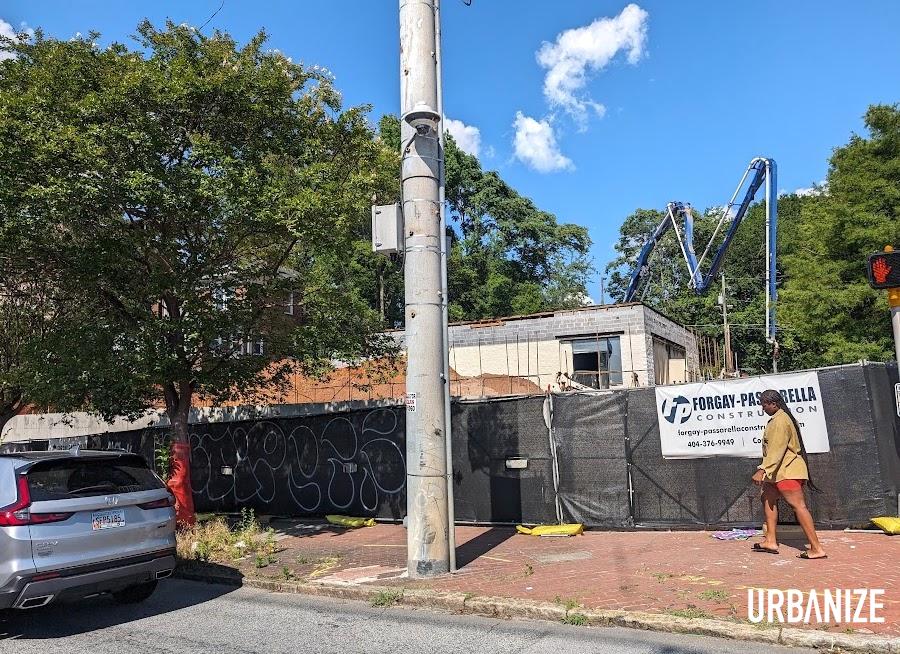 Construction progress with an adaptive-reuse component at the 619 Boulevard site this week Josh Green/Urbanize Atlanta