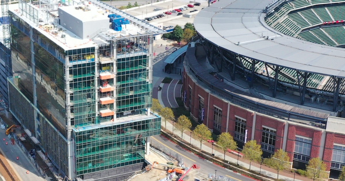 As the Major League Baseball season unfolds, the Atlanta Braves and their real estate arm, Braves Development Company, have provided Urbanize Atlanta with photography showing how a new facet of The Battery Atlanta mixed-use complex is taking shape, two years after the project was announced.