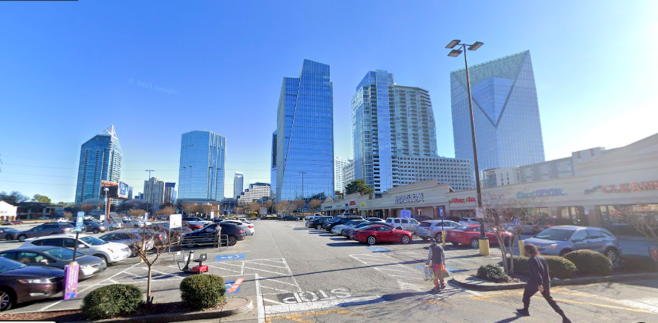 The 3330 Piedmont Road shopping center (as seen from Disco Kroger's entry) prior to redevelopment. Google Maps