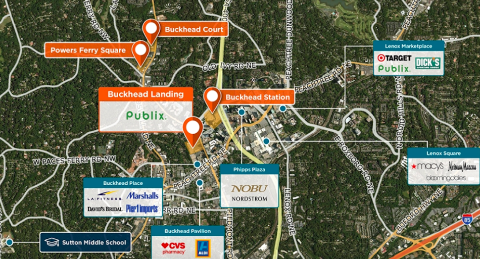 Regency currently owns and operates 23 properties in metro Atlanta, most of them clustered in Buckhead (seven properties total), Sandy Springs, and Dunwoody. (According to marketing materials, the average home value within three miles of the Buckhead Landing shopping center is a whopping $1.26 million.)