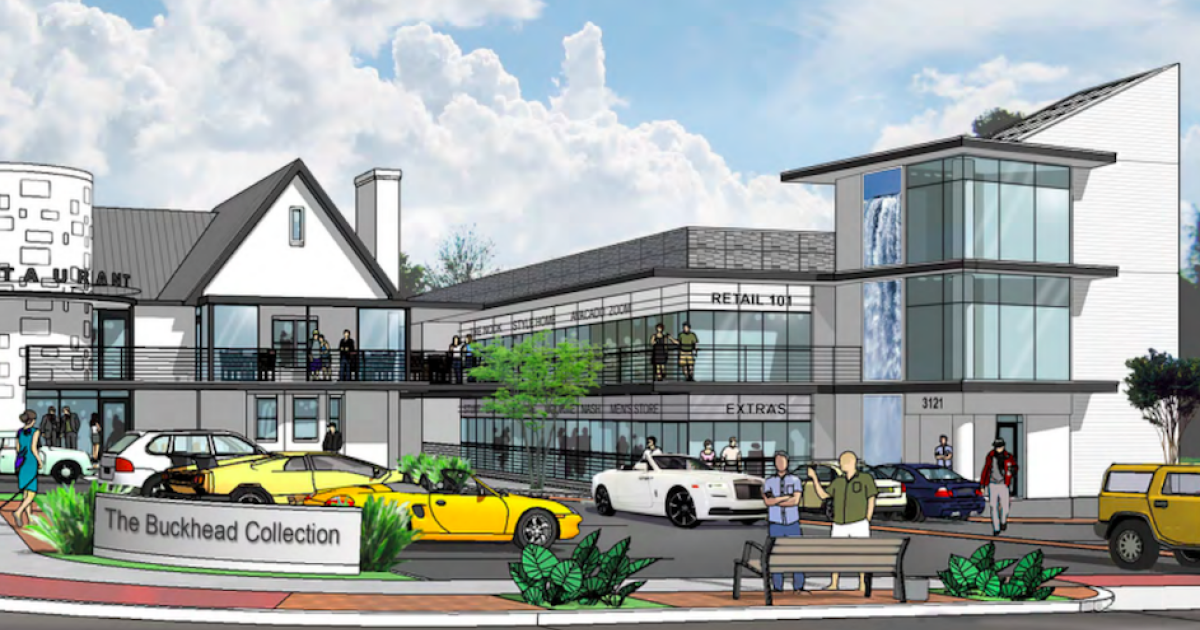Renovation and expansion plans call for a trendy hub of retail, restaurant, and offices melding several architectural styles called The Buckhead Collection.