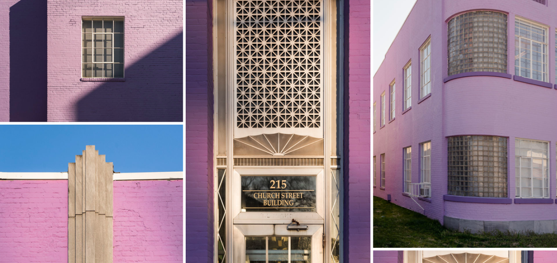 The Church Street building embodies the vernacular of Streamline Moderne, a sub-genre of Art Deco design. Courtesy of Gene Kansas Commercial Real Estate