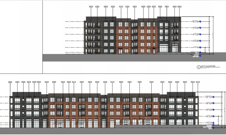 Plans for the Solis Hapeville project’s Porsche Avenue facade.Terwilliger Pappas; designs, Dynamik Design