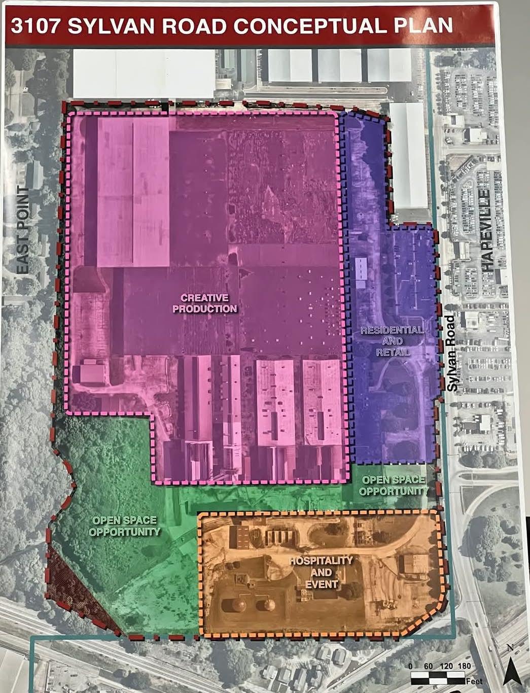 Other aspects could include a mix of housing options for both long and short-term stays, hotel space, greenspaces, and a communal public area that would function as “a destination for entertainment, dining, and shopping, attracting both local and regional visitors,” per East Point’s announcement.