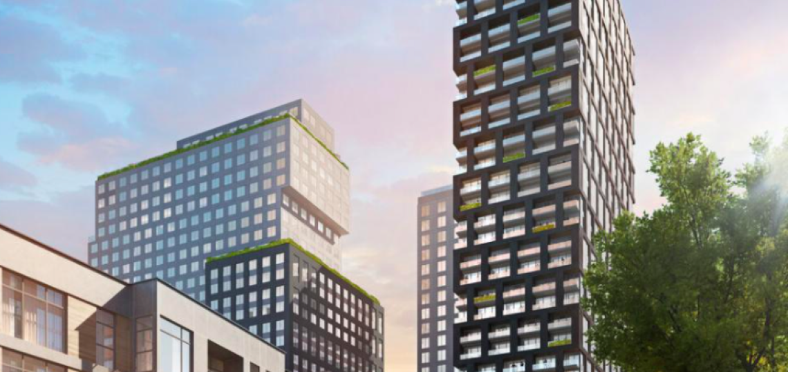 The project includes 600 apartments total (640 beds) plus 4,900 square feet of retail and 615 parking spaces to serve both buildings. It’s scheduled to deliver in spring 2024, according to Midtown Alliance.