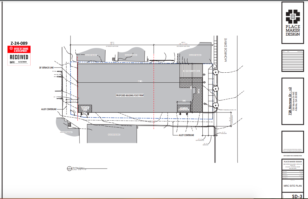 The 728 Monroe Drive NE venture is scheduled for a first reading before the Atlanta City Council Zoning Committee today.
