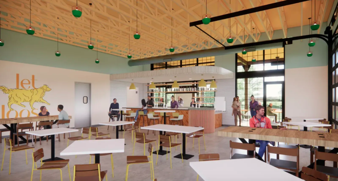 Off Leash is billed as a laidback “neighborhood” oasis and “first-of-its-kind luxury doggie destination” that features both outdoor and indoor dog parks (expect Adirondak chairs galore), a dining patio, and an indoor restaurant (with human food only, serving breakfast, lunch, and dinner). Elsewhere will be a large bar dishing Dancing Goats coffee, craft cocktails, and other libations.