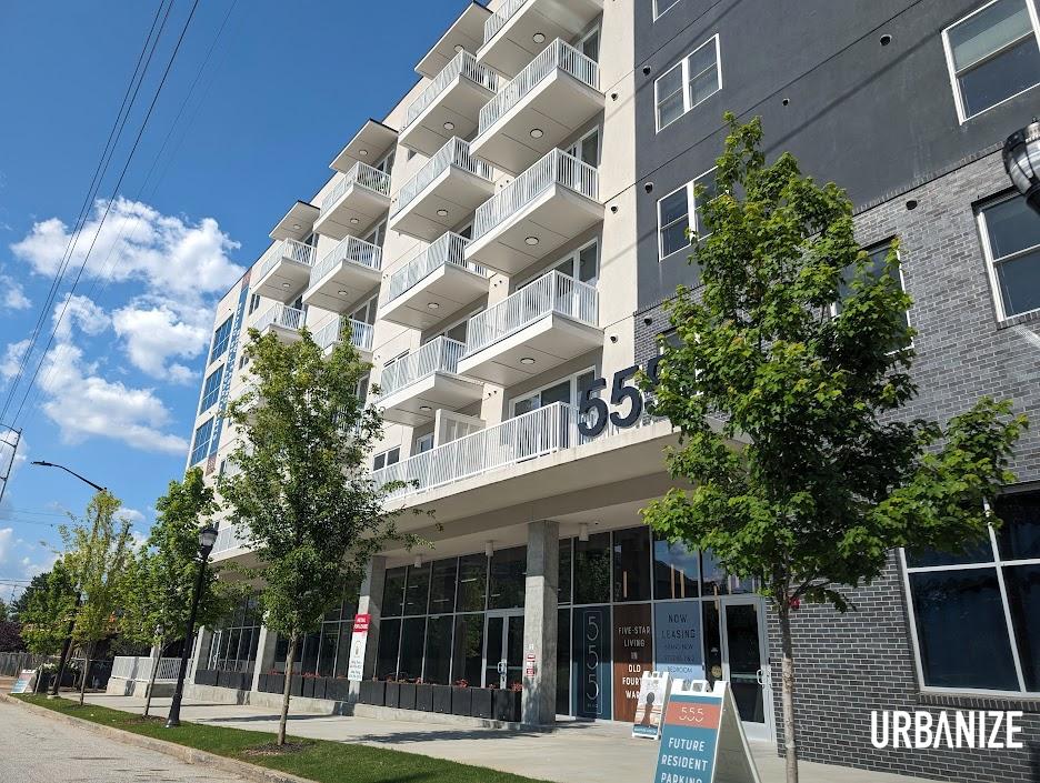Following a protracted construction phase that stretched across several years, the mixed-use 555 Boulevard development has been moving in first residents this spring. As is typical with newer intown multifamily projects right now, two months of free rent is being offered as an incentive.