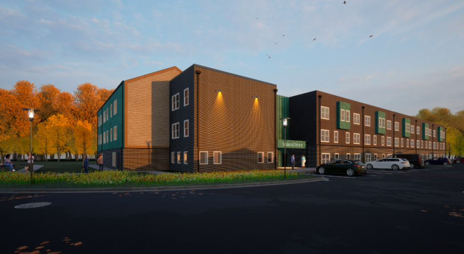 Solace Grove plans call for 125 new affordable housing options total, plus greenspace, walking paths, and raised-bed gardens.
