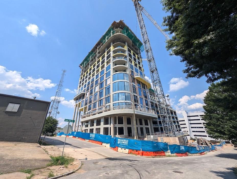 The tallest new building to recently alter Atlanta’s burgeoning skyline west of Georgia Tech is on pace to top out in September, a year and ½ after construction began, according to developers.