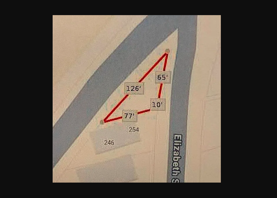 “This exceptional triangular corner lot is not just a piece of land; it’s a canvas for your dreams,” reads the spiel. “With the possibility of variances, you have the flexibility to create a distinctive living space that stands out as a true gem in the city.”