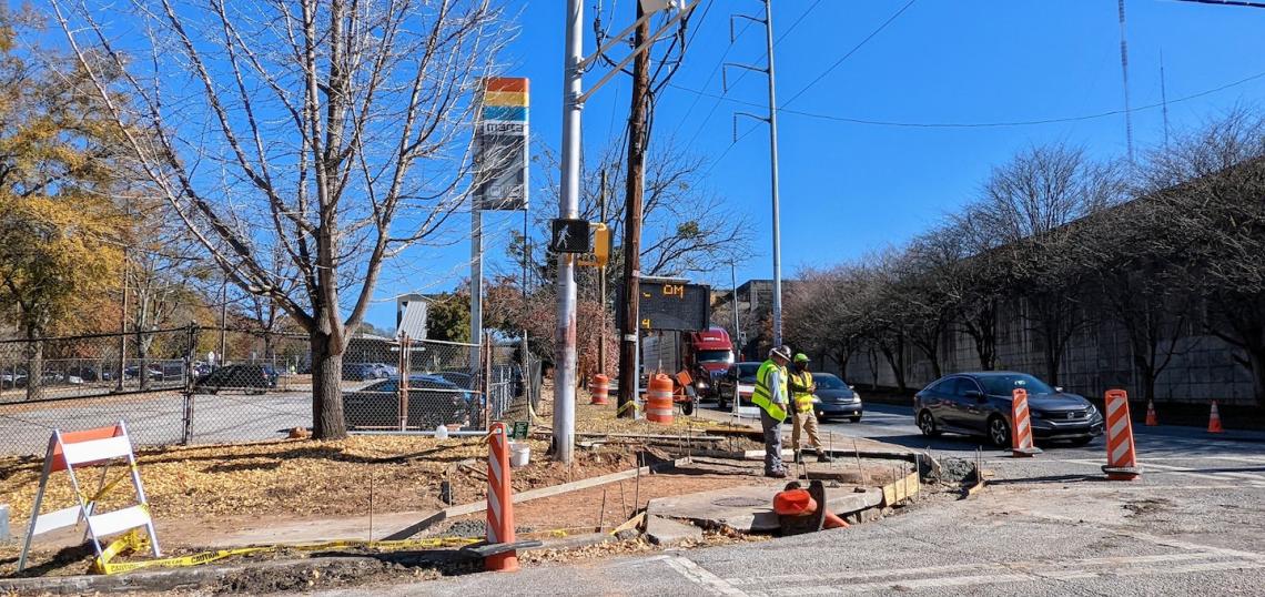 Flashing road signs notify drivers that lane closures began Monday. Signs affixed to light poles near downtown warn of roadwork ahead—for the next six miles. And at two intersections in Candler Park, including the busy crossroads near MARTA where DeKalb Avenue meets Oakdale Road, crews were spotted today replacing sidewalks and pedestrian connections to the avenue.