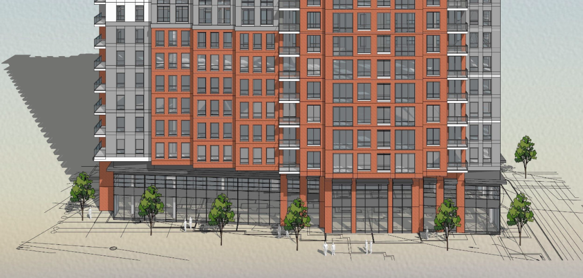 Plans call for 163 of the 405 apartments to be reserved as affordable housing for renters earning 60 percent or less of the area median income. All apartments will be housed in the same tower structure, sharing the same amenities.