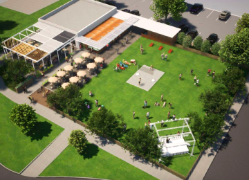 Restaurant, large lawn, shipping containers envisioned for underused corner property