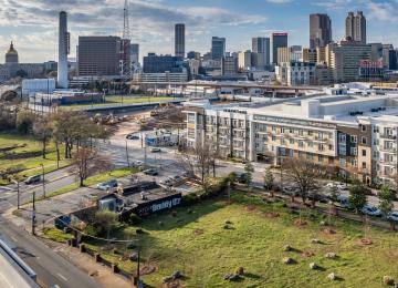 Housing block bound for shadow of Mercedes-Benz Stadium